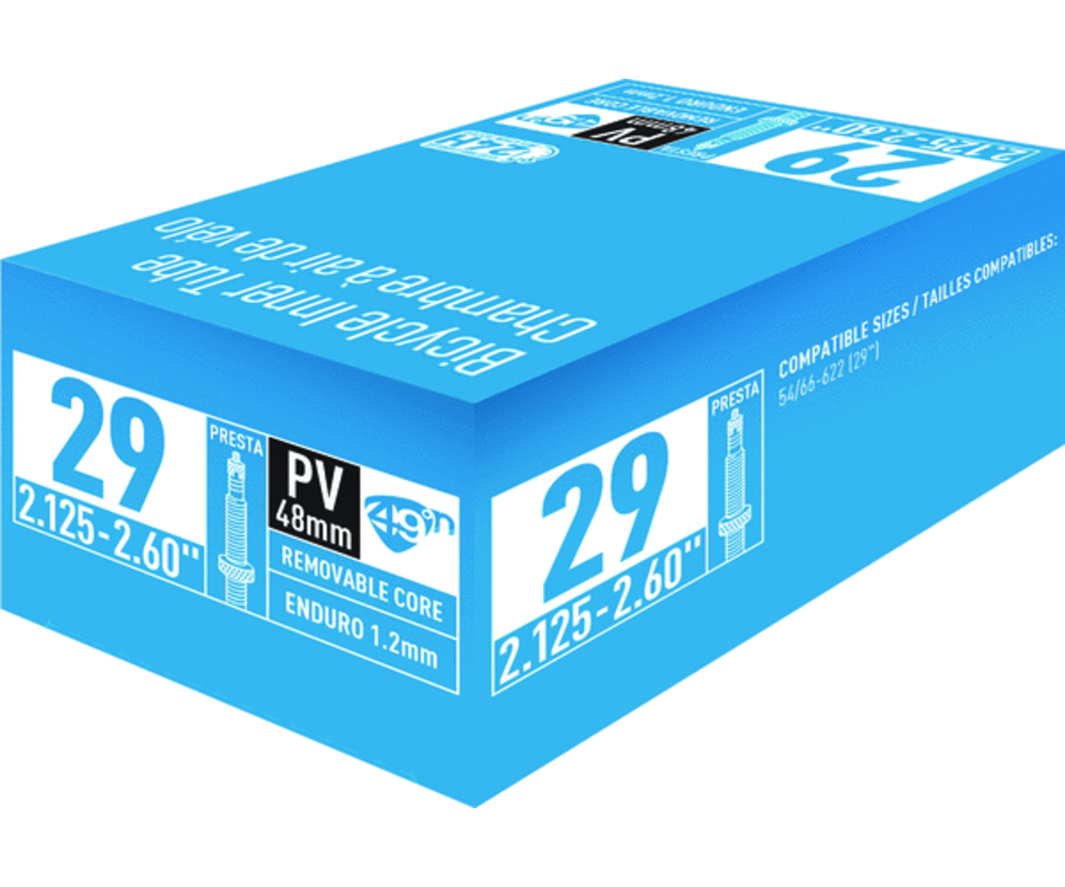 - Valve Presta (ou valve française) avec options de longueur 48 mm pour une excellente compatibilité avec les jantes à double paroi