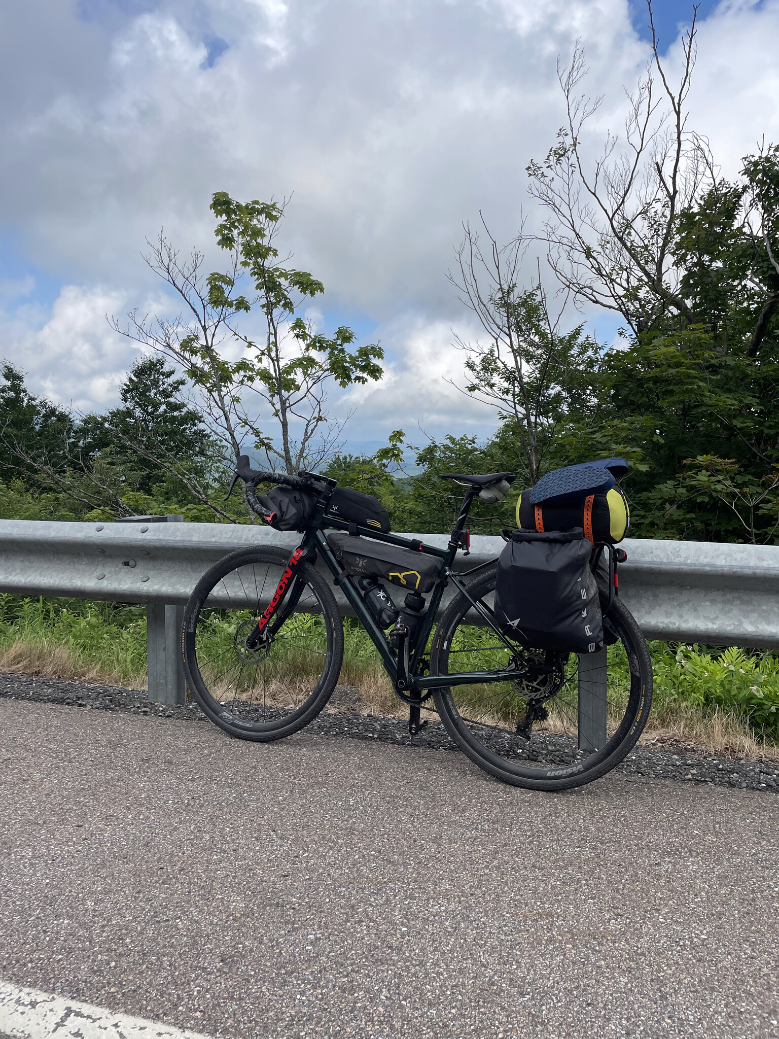 Côté configuration, bien que j’aie hésité au début, j’ai finalement troqué mon vélo de route et mes sacs aéros pour mon vélo de gravelle, avec un support à bagages agrémenté de sacoches. Un choix qui s’est avéré gagnant sur toute la ligne!