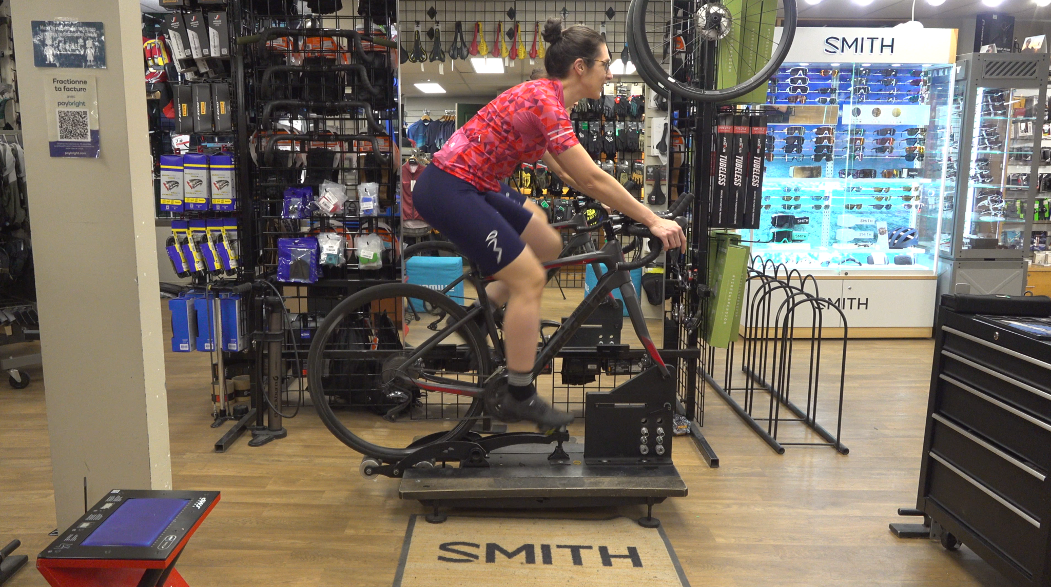 Finalement, nous avons revu les points critiques de mon positionnement cycliste, compte tenu qu’on venait de modifier la selle, une composante majeure sur un vélo. Comme je roule souvent en appui sur des barres aéro, on a fait plusieurs tests pour s’assurer de trouver la bonne inclinaison avant-arrière de ma nouvelle selle. Enfin, j’étais prête à aller profiter de ma nouvelle selle pour dorloter mon postérieur à l’avenir!