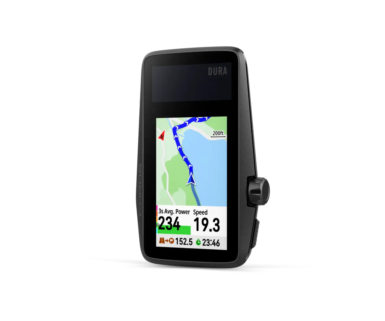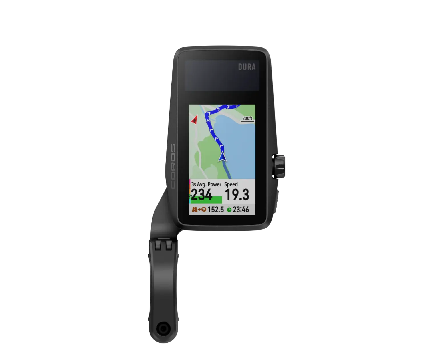 Ordinateur vélo GPS Dura Solaire de COROS, 120 heures d'autonomie, chargement solaire, cyclomètre à écran tactile et boutons, avec cartes GPS disponible, connectivité Bluetooth et ANT+. Achat en ligne ou à nos magasins du Québec, au Canada.