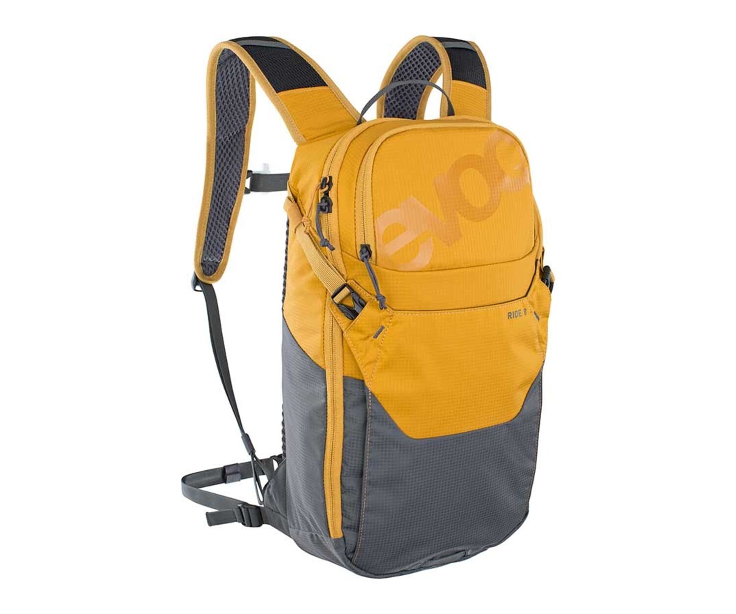 Sac d'hydratation Ride 8 de EVOC pour randonnée à vélo, capacité de rangement de 8 litres, rembourrage dorsal Air Pad bien aéré et ceinture extra large, compatible avec les réservoirs d'hydratation jusqu'à 3 litres. Achetez en ligne ou à notre magasin de Québec au Canada.