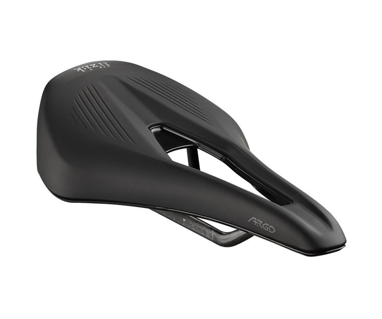 Selle de vélo de route FIZIK Vento Argo R1 haut de gamme, découpe centrale favorisant la circulation au niveau des tissus mous, nez court parfait pour une conduite plus agressive et aérodynamique. Achetez cette selle de course, en ligne ou à notre magasin de Québec au Canada.