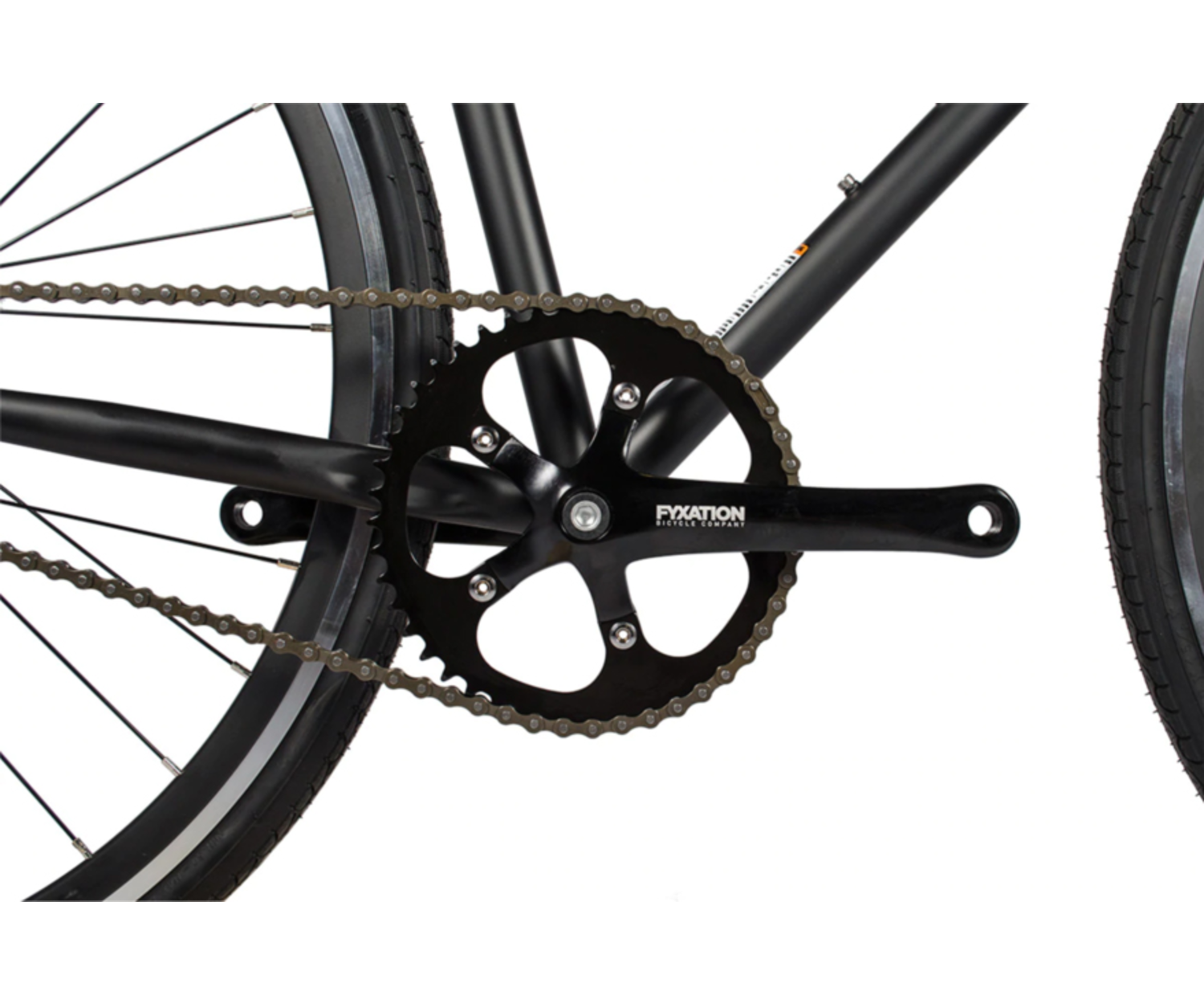 | Moyeux | Fyxation sealed bearing hub. Sixteen tooth single speed an fixed gear cog installed.Fyxation sealed bearing hub. | |