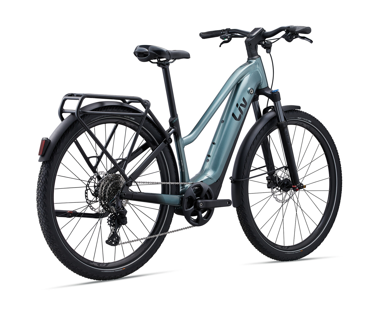 Ce LIV AMITI E+ Pro 2025 est un vélo électrique hybride performance (E-bike) conçu pour la femme, moteur à assistance électronique de 800 Wh, suspension avant, cadre en aluminium. Achat en ligne ou à notre magasin de Québec au Canada.