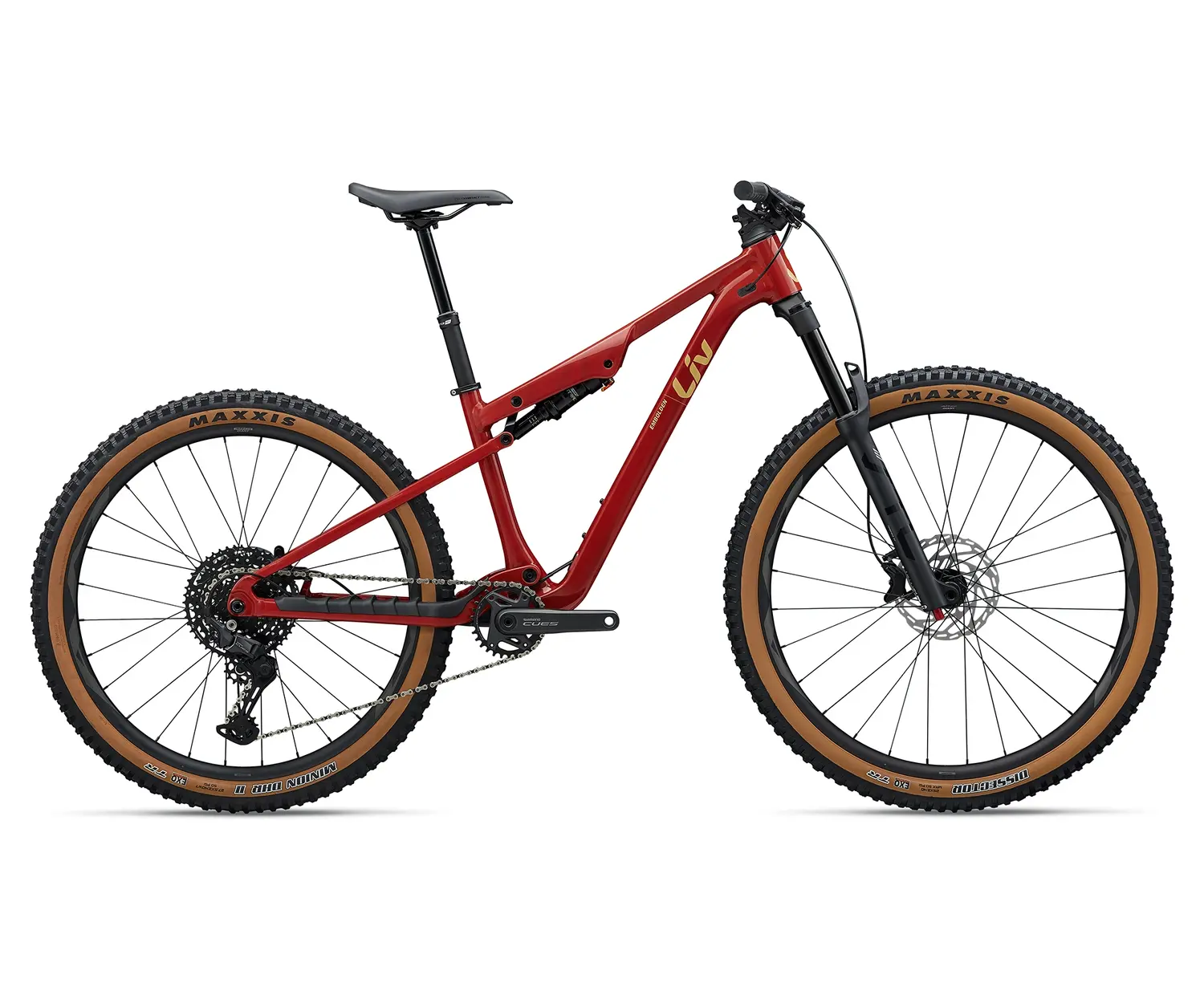 Ce LIV Embolden 2026 est un vélo de montagne trail pour femme, cadre en aluminium, double suspension, débattement 140mm, tige de selle ajustable, freins à disque, monté en Shimano CUES. Achetez ce vélo de trail, en ligne ou à nos magasins du Québec au Canada.