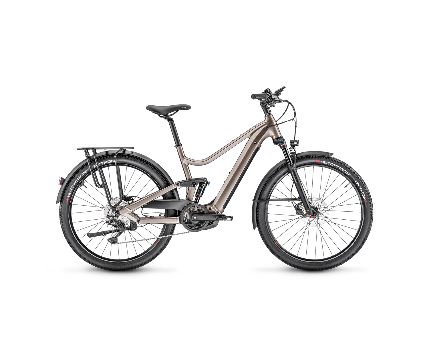 Avec son cadre de 100mm de débattement avant et arrière confié à l'amortisseur Moustache Magic Grip Control ainsi qu'à une fourche Suntour XCR, sa motorisation Bosch équipée du système Performance Line CX Smart System avec batterie intégrée PowerTube 500Wh, ses pneus ultra confort Hutchinson Python, le Xroad FS 3 vous emmène comme sur un tapis volant !