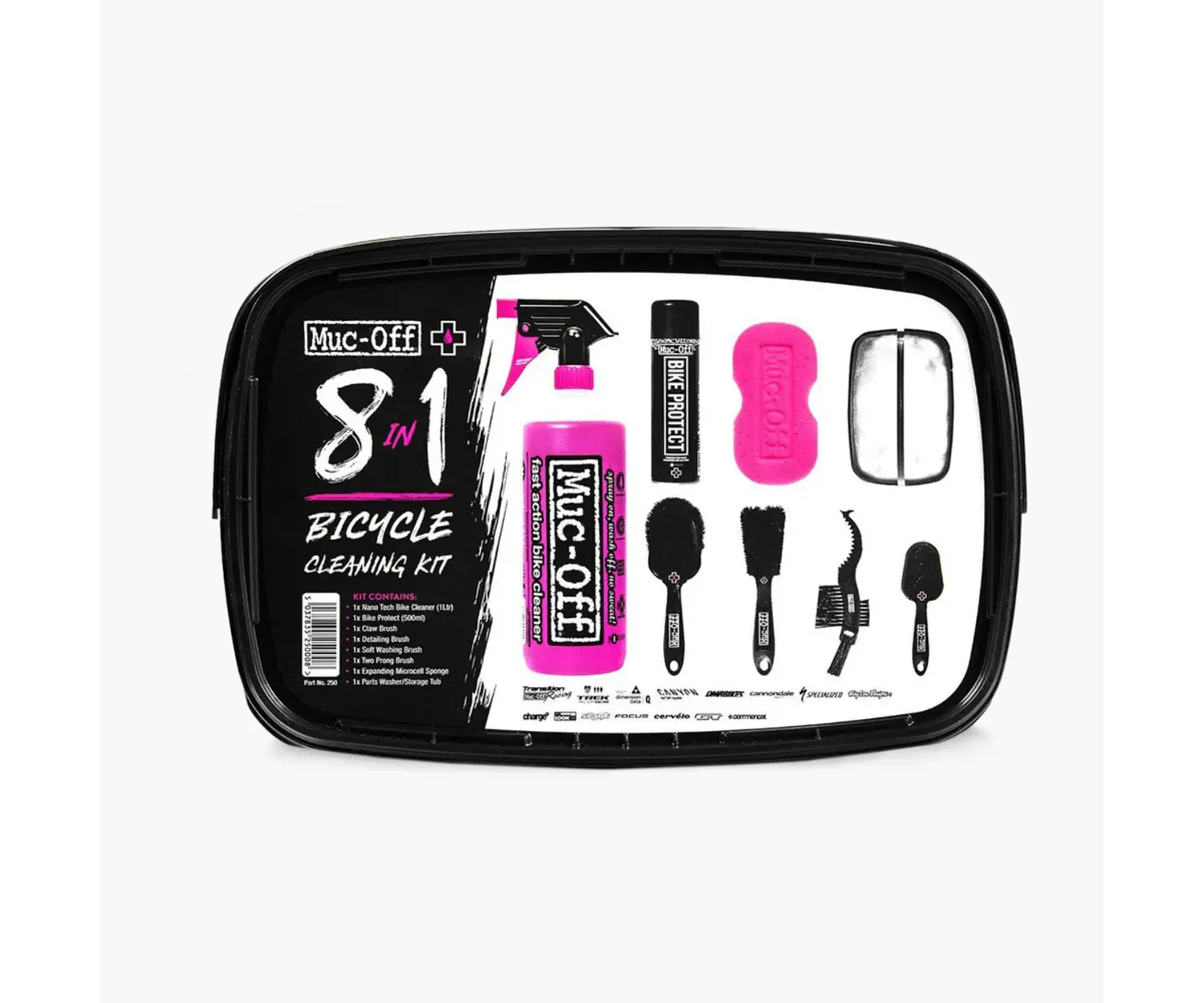 Trousse de nettoyage 8-en-1 MUC-OFF pour vélo, comprend un nettoyant, un protecteur anti-rouille, et divers brosses pour un nettoyage efficace. Achetez en ligne ou à nos magasins du Québec au Canada.