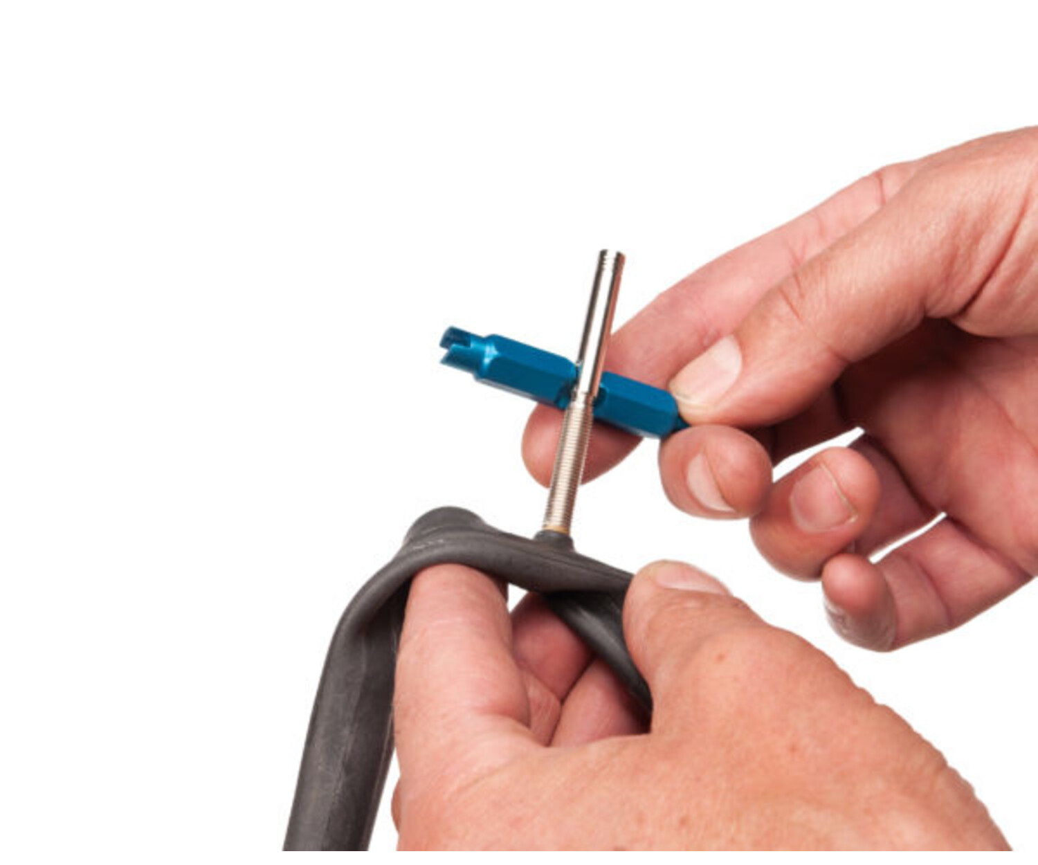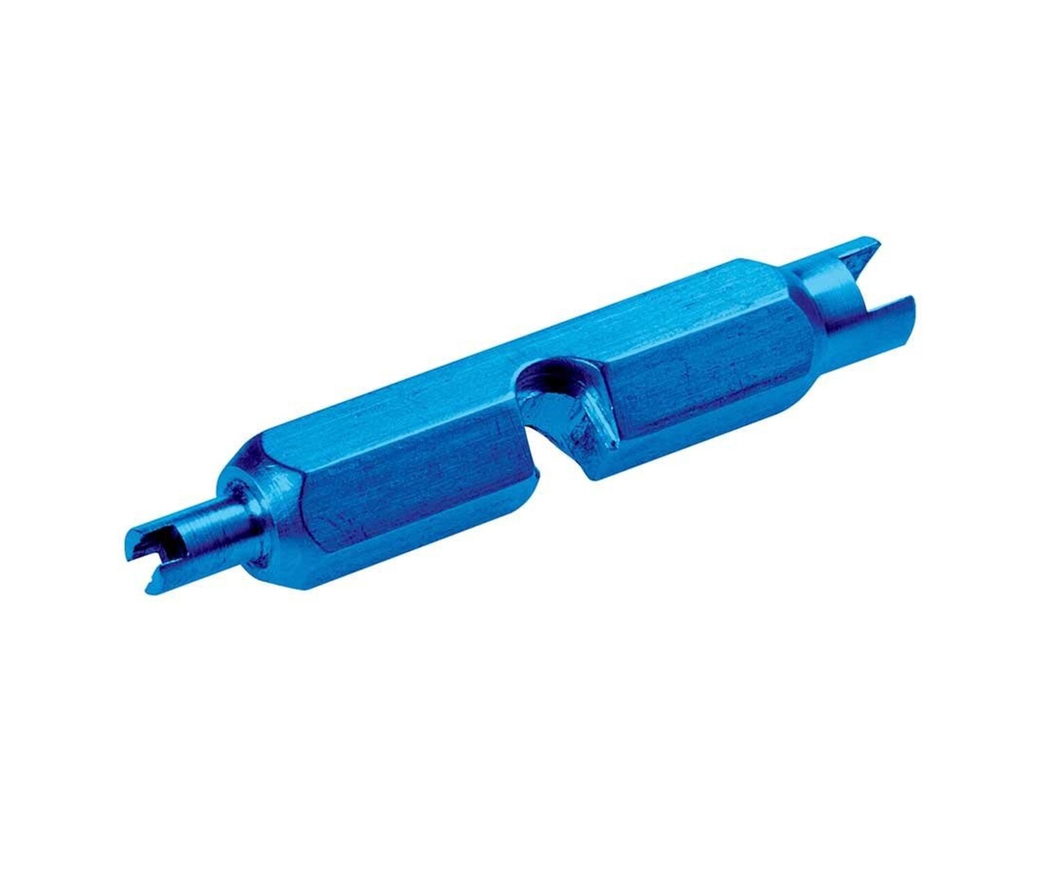Ce petit outil pratique est conçu pour retirer et installer des noyaux de valve Schrader et Presta ainsi que pour retirer et installer des rallonges de valve Presta comportant des surplats de serrage de 5 mm.