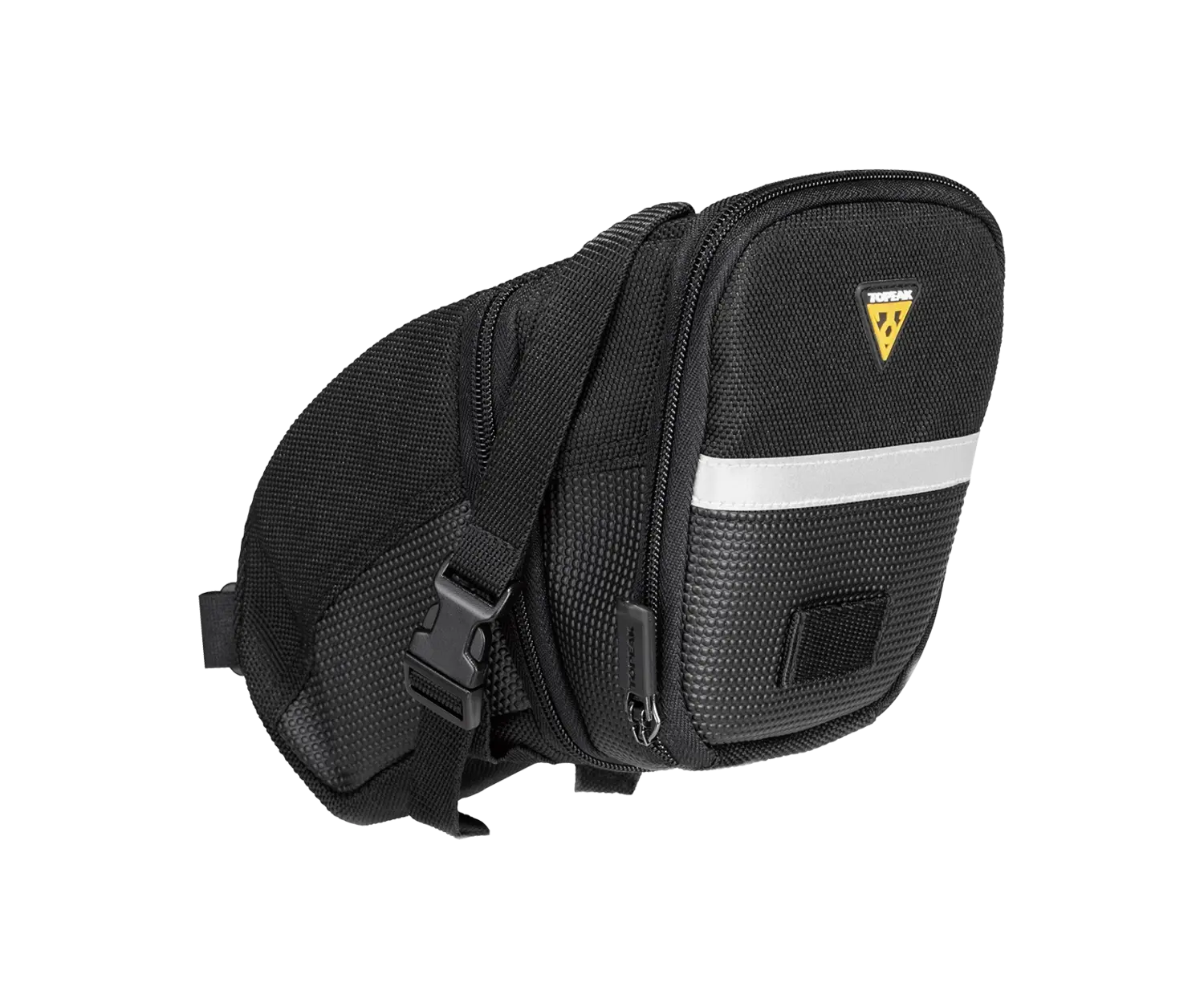Sac de selle vélo Aero de TOPEAK se fixe sur la tige de selle à l'aide de sangles, coupe aérodynamique, en nylon résistant, formats: micro, petit, moyen et grand expansible. Achetez cette sacoche de selle, en ligne ou à notre magasin de Québec au Canada.