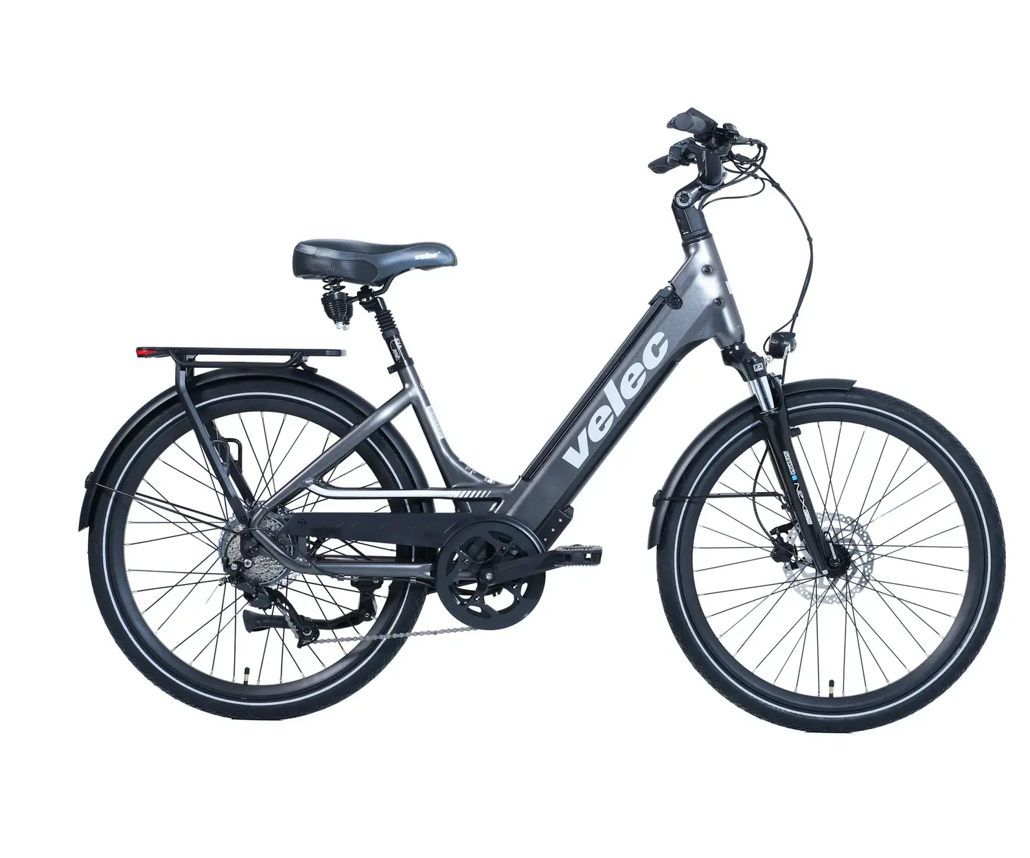 Ce VELEC R48+ 14Ah 2026 est un vélo électrique hybride muni d'un moteur à assistance électrique, batterie 14Ah/672Wh, suspension à l'avant, cadre en aluminium facile à enjamber, clignotants intégrés. Achetez ce E-bike bien équipé, en ligne ou à nos magasins du Québec au Canada.