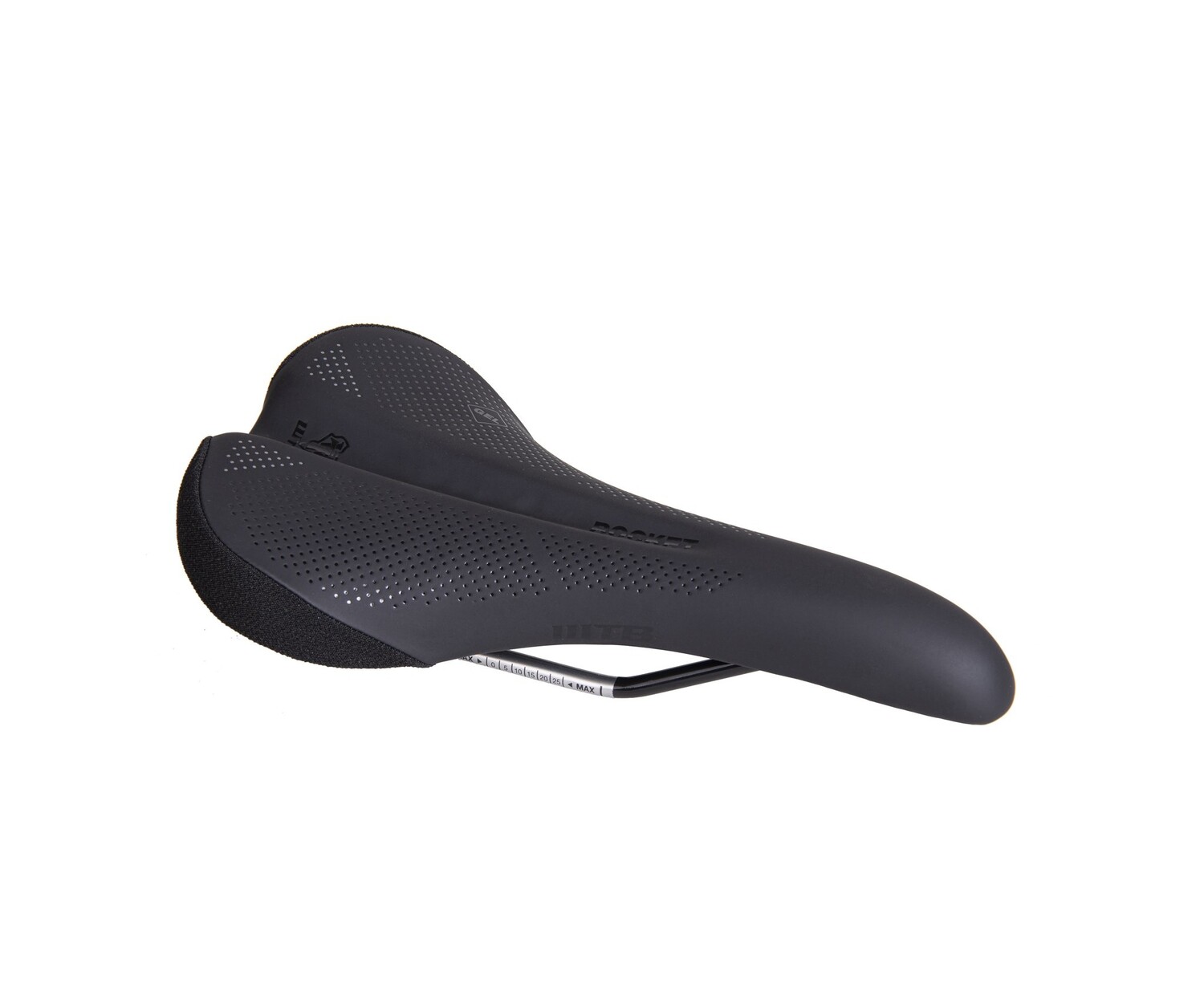 Selle de vélo montagne WTB Rocket pour homme, rembourrage épais, avec un nez étroit, limite les frottements pendants les longs parcours, disponible sur rails en chromoly ou en acier, recouvrement en microfibres ou en polyuréthane. Achetez cette selle de VTT, en ligne ou à notre magasin de Québec au Canada.