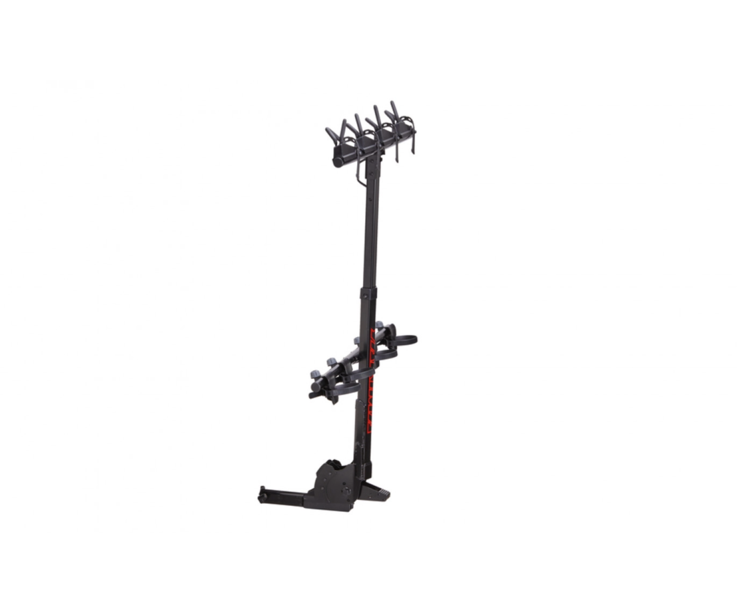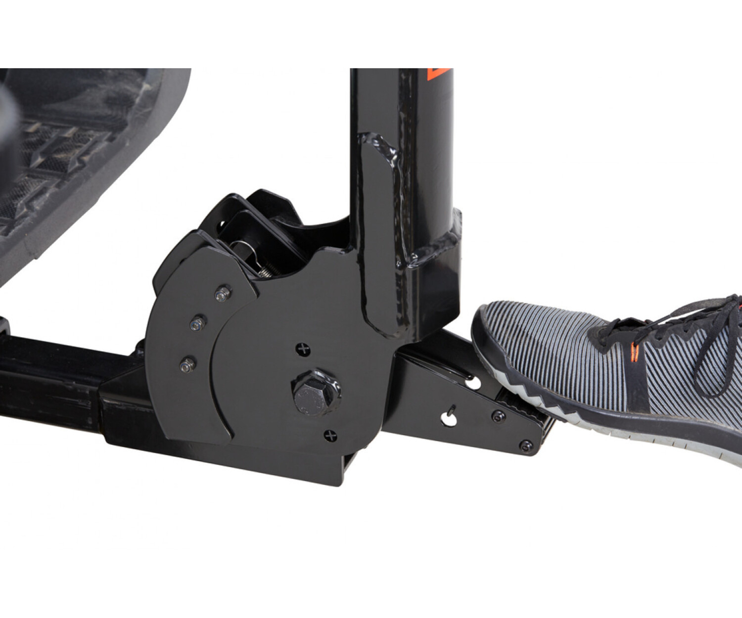 - Mécanisme d’inclinaison actionné par le pied qui change la position du porte-vélos pour faciliter le chargement et le déchargement
